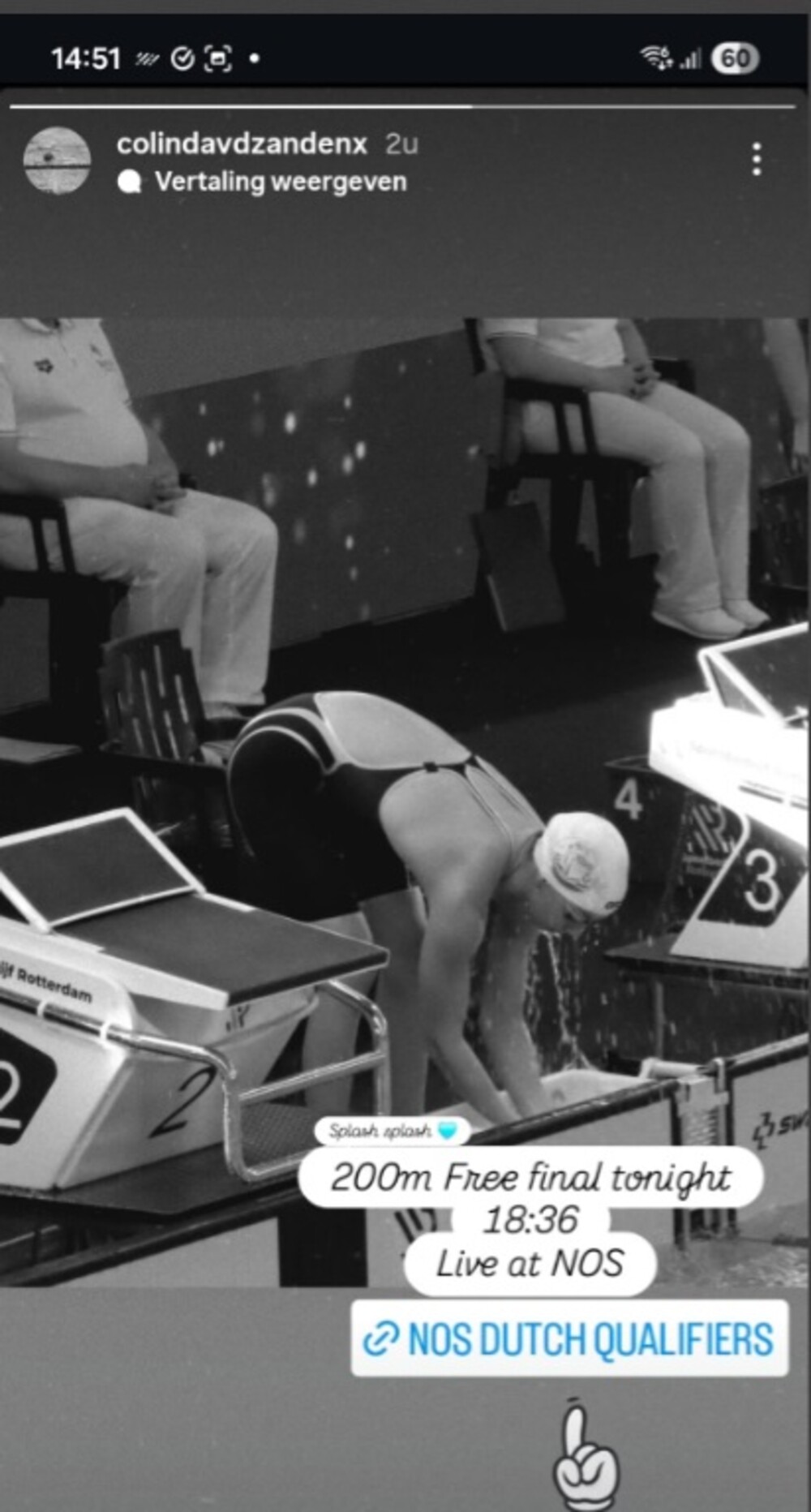 "Onze ex-clubgenoot zet de zwemsport goed op de kaart",. Beste mensen kijk vanavond allemaal naar studio sport, Hierbij de livestream https://nos.nl/livestream/2585438-kijk-hier-live-naar-de-ek-kwalificatie-zwemmen